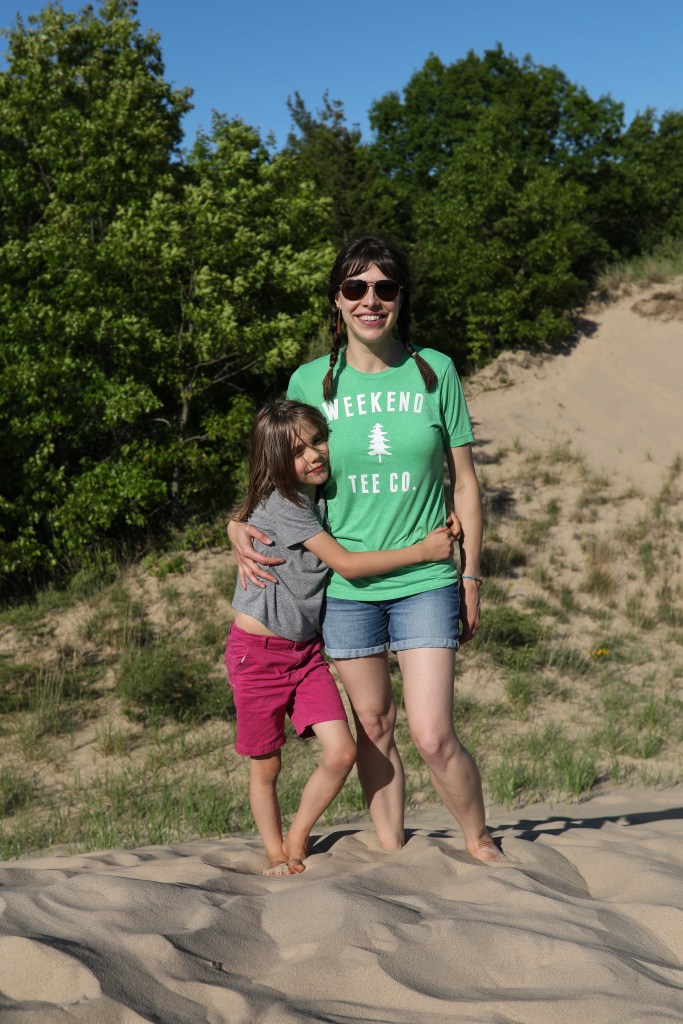 It’s the last week of school and the weather has been summer-like and this past weekend was lovely. We went to Saugatuck Dunes State Park and both K and I were amazed that we’d never been before. Getting to the beach involved a long hike through the woods, but it was gorgeous.