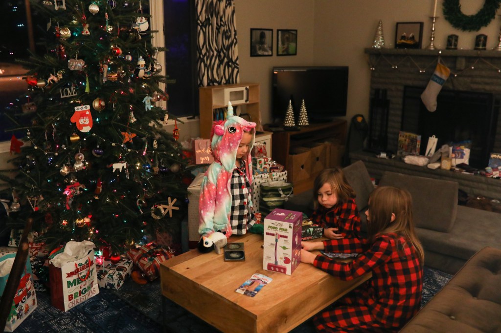 We’re used to a quiet Christmas at home, so this year didn’t feel like the loss so many other families were feeling. Vivienne woke up first, around 6 a.m., and woke everyone else with the kind of enthusiasm only a child has on Christmas morning. Her most beloved gifts were a toy dog that barks and walks rolls on a leash that she begged for, and a pink instant camera given to her by Gigi and Papa Doc. She also adored the unicorn bathrobe Grandma Sue bought for her and wore it all day. Throughout the day she kept telling us what a wonderful Christmas she was having, her joy just overflowing.
