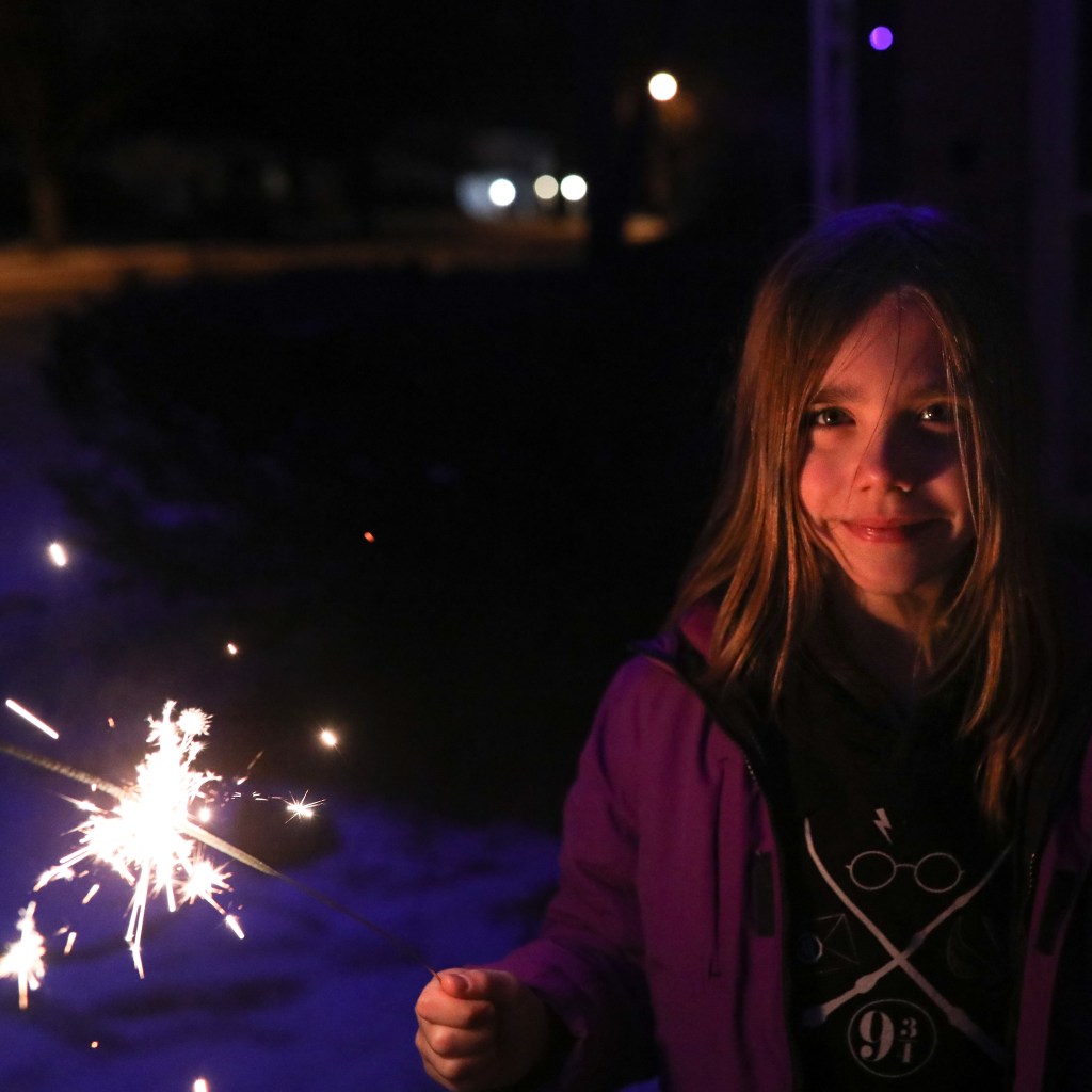 On New Year’s Eve I made the same shrimp that a friend made for us last year, we did some kitchen karaoke, Jonah and Vivi and I watched a movie while K and Jude did something else, and around 11:30 p.m. we went out to the driveway to do sparklers.